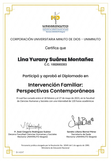 - Diplomado en Intervención Familiar (Bogotá, 2023).